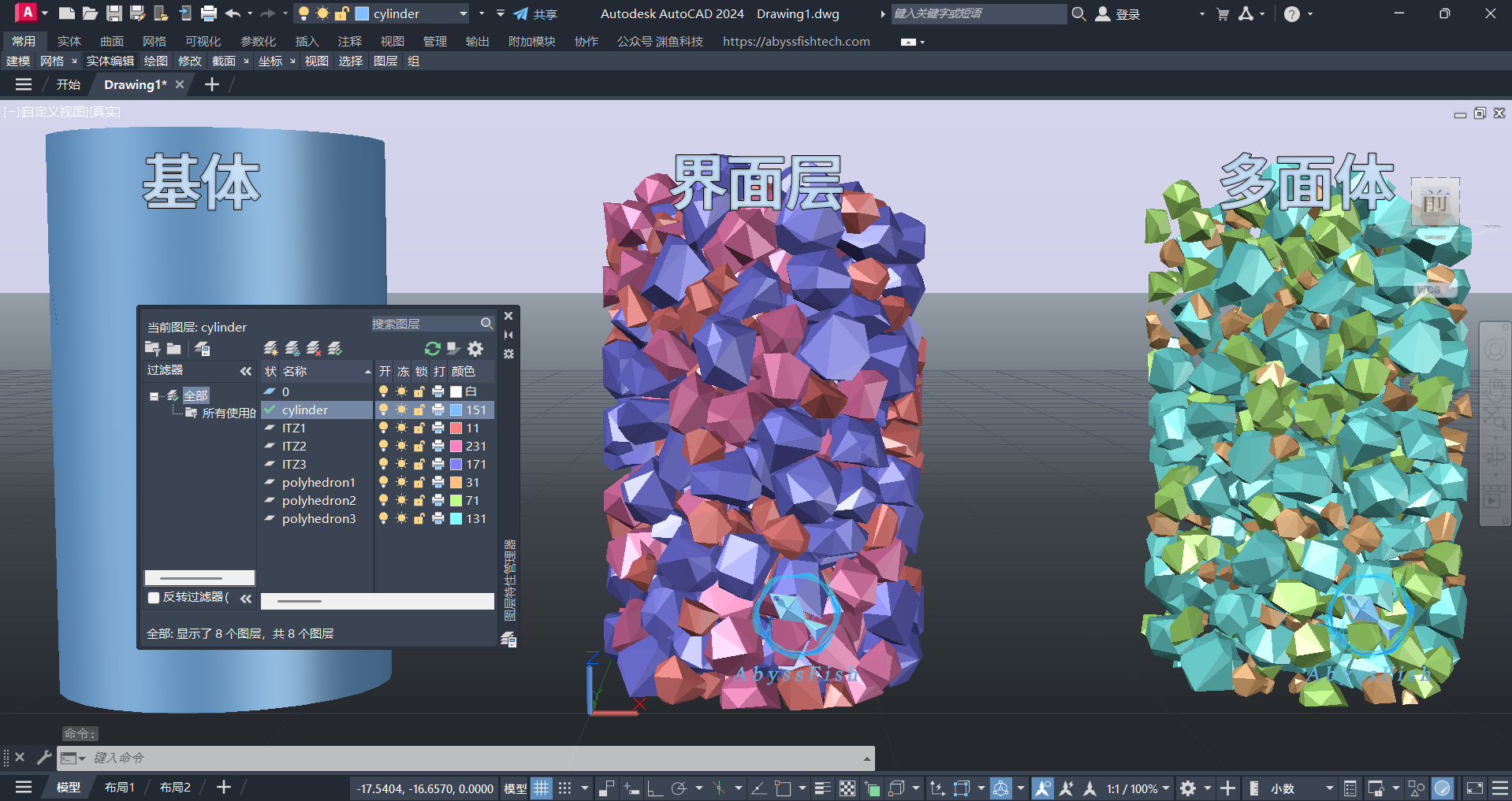 CAD多面体密堆积_圆柱体试件3D插件生成的模型样图,可进行其他软件的导入测试及模拟。(CAD2010文件)