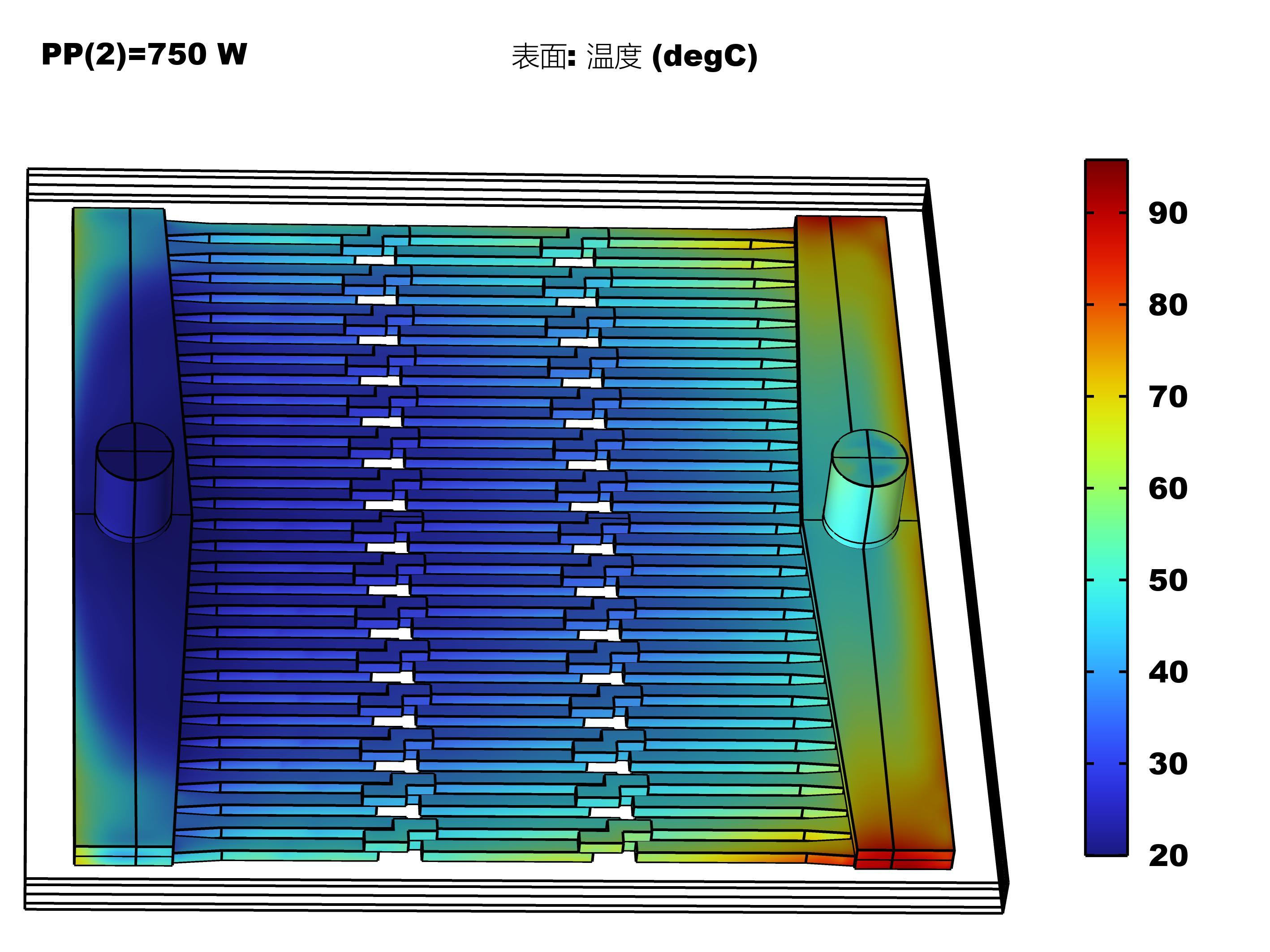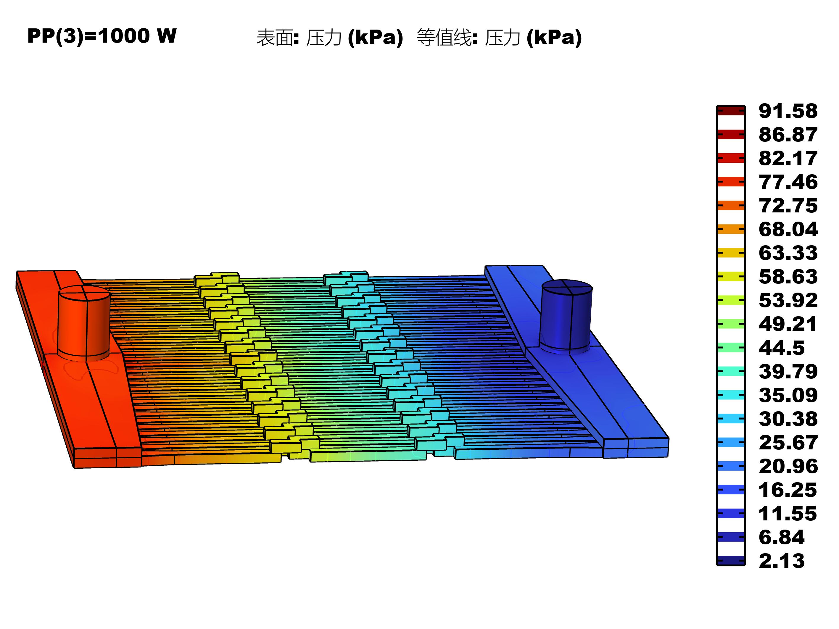 人工智能计算卡芯片功率逐年攀升,GB200功耗已逼近2700W,单芯片功耗已逼近千瓦级,传统风冷无法满足,需要液冷来解决越来越严重的散热问题。本案例使用一种分裂重组(Splitting And Recombination,SAR)的方案来设计了一种嵌入式微通道散热器,作为芯片级冷却的第三代散热技术,该方案相对直流道可获取40%左右的热阻降低。