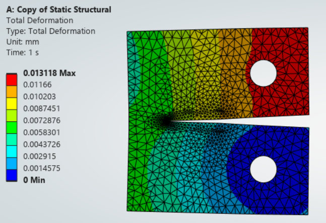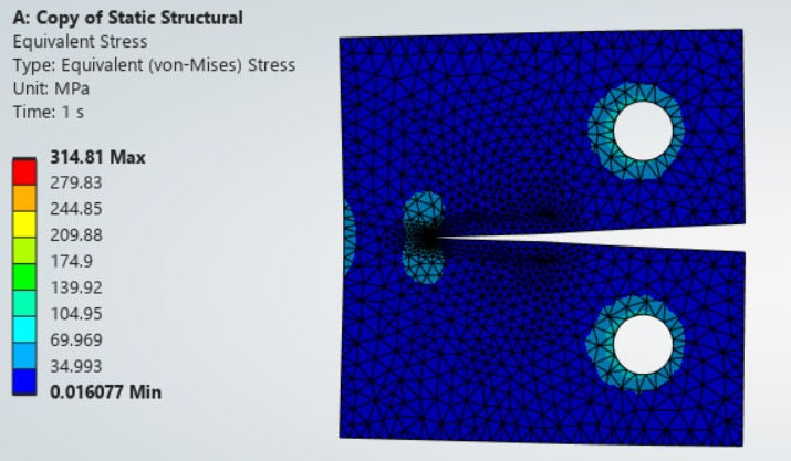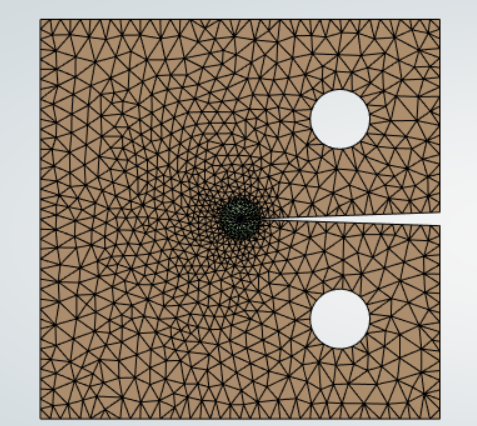 裂纹扩展模拟一直是学术界和工业界的一个难题。Ansys机械提供分离变形和自适应重网格模拟脆性材料裂纹扩展的SMART技术。SMART裂纹扩展方法自动评估裂纹尖端的断裂参数(应力强度因子或j积分),并根据用户定义的临界值进行检查。该算法还计算了满足裂纹扩展准则时的裂纹扩展角。随着裂纹的扩展,裂纹尖端周围的网格自适应细化。