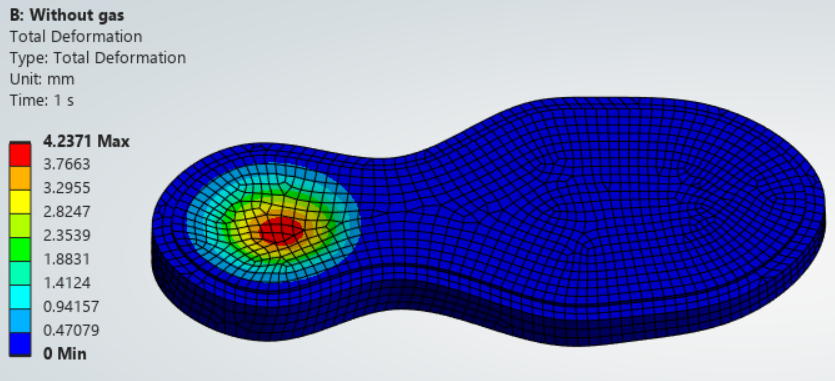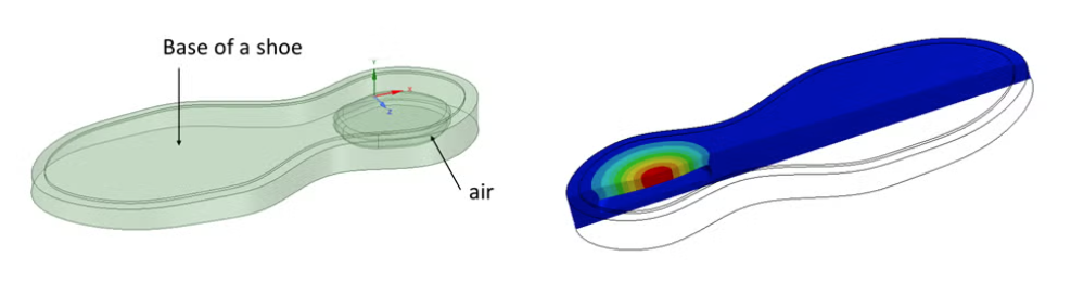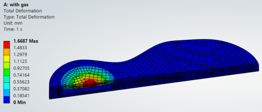 流固相互作用是工程应用中常见的问题。一种情况是液体(或气体)包含在固体中,在固体上施加各种载荷,例如轮胎、充气鞋和流体容器。静压流体元件非常适合这种应用。介绍了一种模拟气囊式气鞋的方法。鞋内的空气遵循理想气体定律。这些静压流体元件是通过Ansys机械中的命令行定义的。