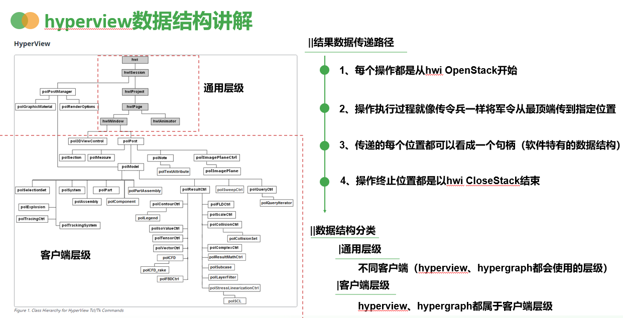 《Hyperview 二次开发入门教程》以 “夯实基础 - 掌握功能 - 落地应用” 为递进逻辑,系统覆盖 HyperView 二次开发全流程核心内容:先从底层的 HyperView 数据结构(明确层级关系与数据传递路径)讲起,逐步展开模型结果加载(解决数据入口问题)、工况与分析步管理(应对多场景数据处理),再深入核心功能开发,包括云图控制(定制化结果可视化)、模型标签(关键信息标注)、动画与变形模式(动态结果展示)、极值获取(自动化核心分析)、截图功能(批量结果导出),最后以页面布局和窗口类型(定制化工作界面)收尾,形成从理解软件逻辑到实现自动化后处理的完整能力链,帮助学习者逐步掌握代码化解决 HyperView 后处理重复操作、提升效率的实用技能。以下是课程具体安排: