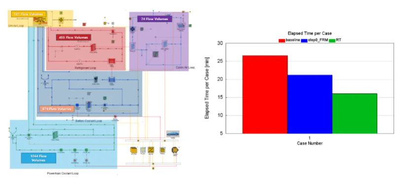 整车热管理模型由于其复杂性,计算速度大大限制了模型的适用性以及用于实时控制的能力。为了让模型能够达到实时水平,同时还要保持物理模型的高度泛化能力,进而避免纯数学模型的严重缺陷,GT-SUITE提供了一揽子方法来加速物理模型。
