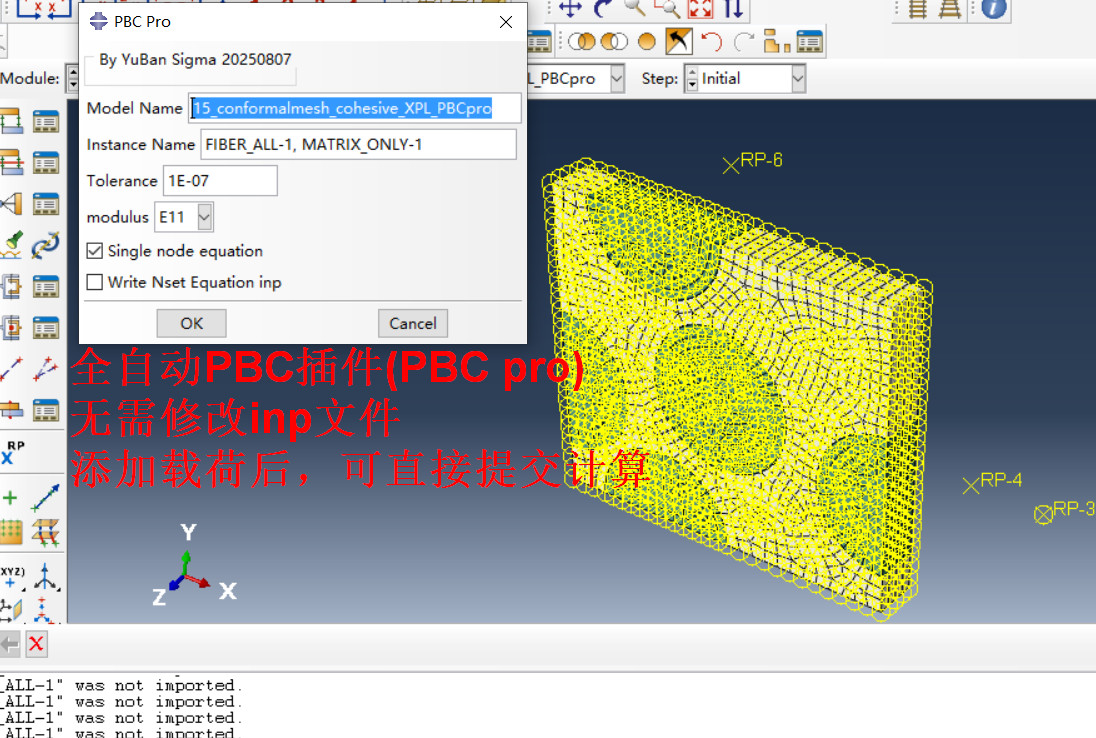 (4) 通过修改输出的inp文件(含equation),实现个性化的周期性边界条件,比如一个方向或者两个方向的PBC。