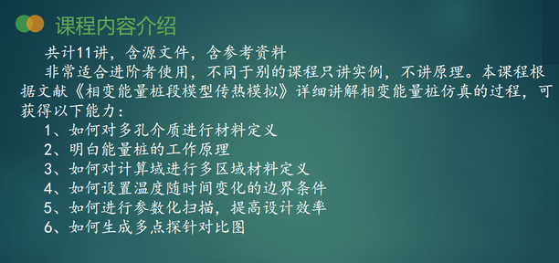 非常适合进阶者使用,不同于别的课程只讲实例,不讲原理。本课程根据文献《相变能量桩段模型传热模拟》详细讲解相变能量桩仿真的过程,可获得以下能力: