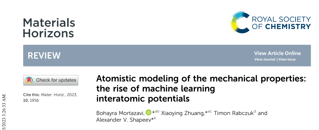 自从2007年机器学习原子间势(MLIPs)概念诞生以来,为了进行更精确和可靠的分子动力学计算,用 MLIPs 代替经验原子间势(eIPs)已经引起了人们越来越多的兴趣。作为一个令人兴奋的新进展,在过去几年中,MLIP 的应用已经扩展到机械和失效响应的分析,提供了迄今为止无法有效实现的新机会,无论是 EIP 还是密度泛函理论(DFT)计算。在这篇小综述中,我们首先简要讨论 MLIP 的基本概念,并概述发展 MLIP 的流行策略。其次,通过考虑几个最近的研究实例,将强调 MLIP 在力学性能分析中的鲁棒性,并强调它们相对于 EIP 和 DFT 方法的优势。MLIP 还提供了惊人的能力,将 DFT 方法的稳健性与连续介质力学结合起来,使纳米结构的力学性能的第一原理多尺度模型在连续体水平上得以实现。最后但并非最不重要的是,基于 MLIP 的分子动力学力学性能模拟的共同挑战被概述,并为未来的研究提出建议。