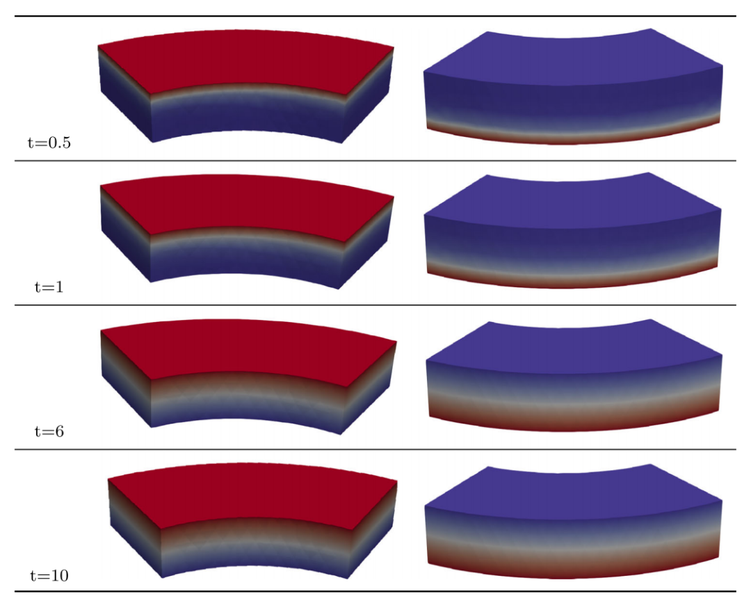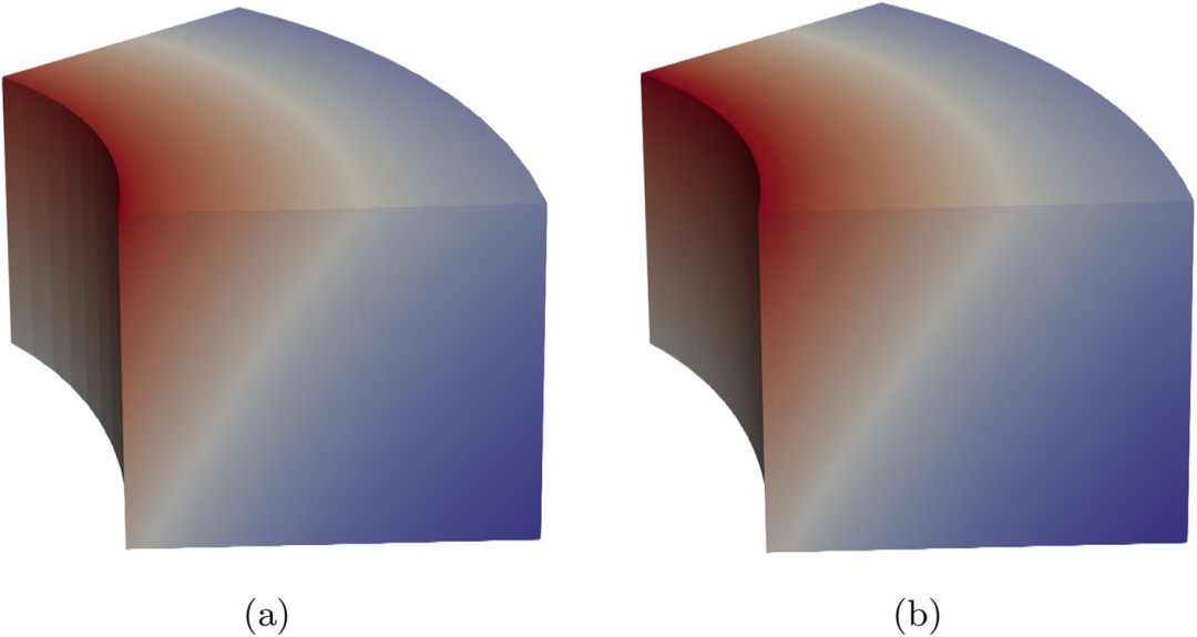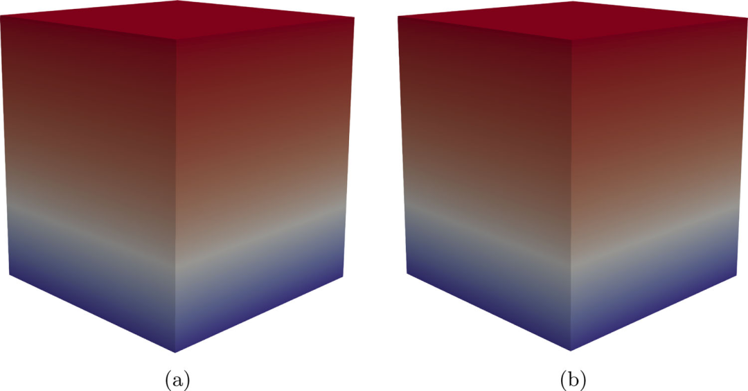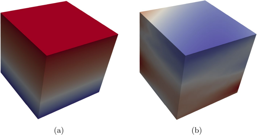 图:时间t=0.1s时功能梯度单位立方体的预测温度和b分析温度分布