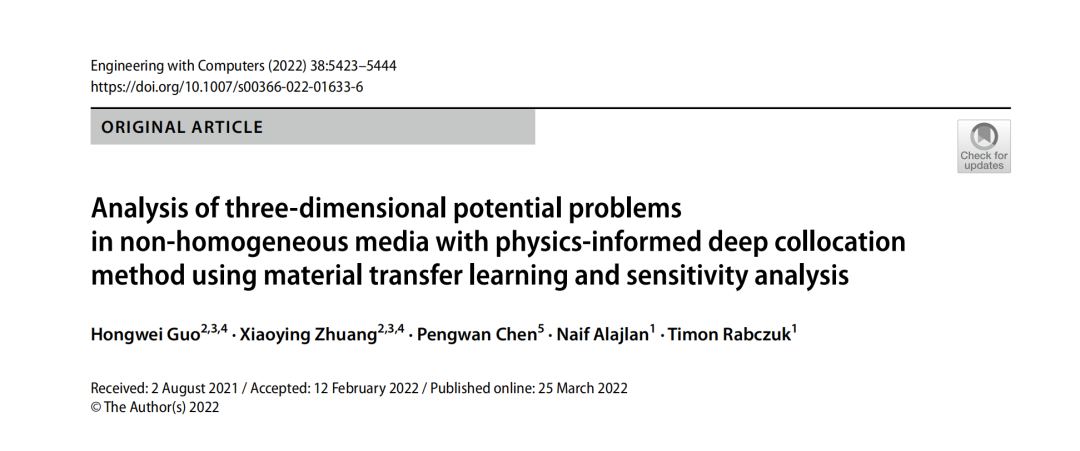 在这项工作中,我们提出了一种求解非齐次介质中三维势问题的深度配置方法。该方法利用具有材料迁移学习的物理信息神经网络,将非齐次偏微分方程的解简化为优化问题。我们测试了物理信息神经网络的不同配置,包括平滑激活函数、配置点生成的采样方法和组合优化器。将材料迁移学习技术用于具有不同材料等级和参数的非均质介质,增强了所提出方法的通用性和鲁棒性。为了确定网络配置中影响最大的参数,我们进行了全局灵敏度分析。最后,我们提供了DCM的收敛性证明。该方法通过几个基准问题进行了验证,还测试了不同的材料变化。
