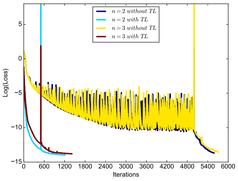 图:考虑n=2有TL、无TL、n=3有TL和无TL的Sisko流体模型的收敛图