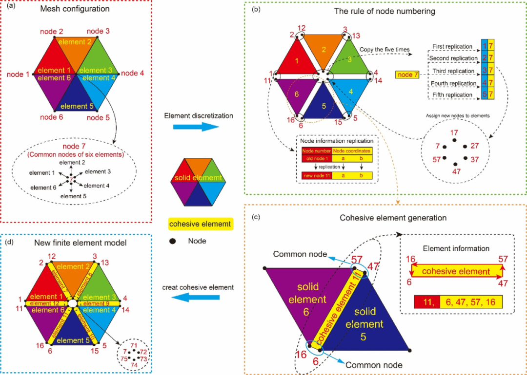 图:ABAQUS中两个相邻实体单元之间的内聚单元的批量生成示意图。