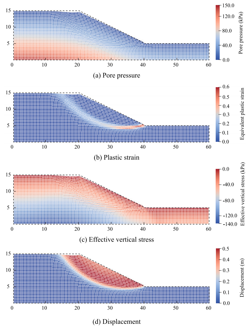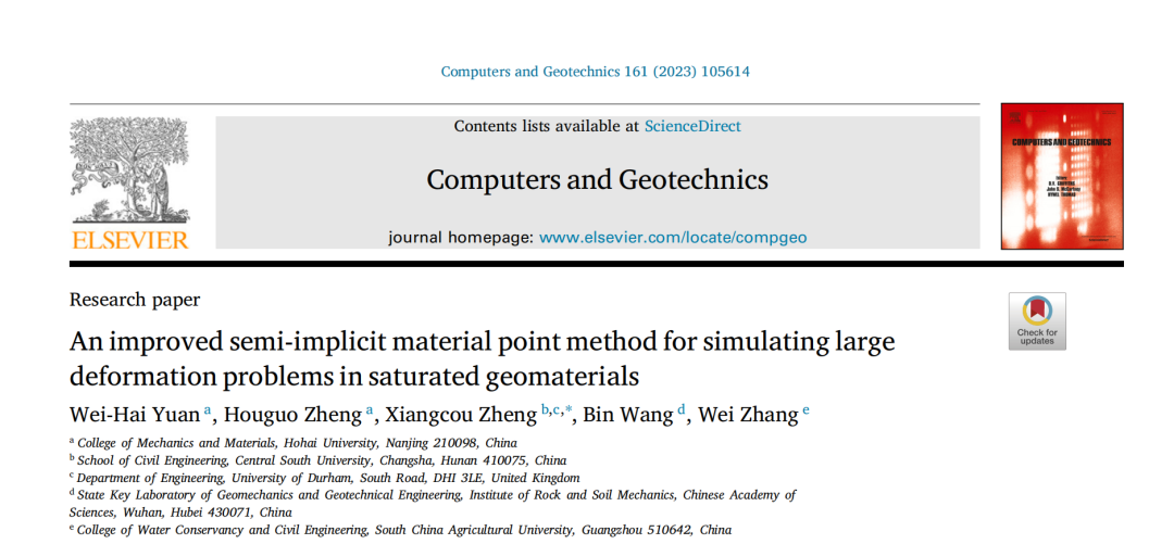 文一: 基于极坐标 GPGPU 并行的三维有限元接触检测算法及其在盾构隧道管片开裂分析中的应用摘要:本研究采用三维有限元-离散单元相结合的方法对管片衬砌在极端条件下的开裂进行分析。考虑到分段之间复杂的接触交互,本研究首先提出了一种基于极性的GPGPU并行接触检测算法,以处理现有FDEM算法所面临的内存问题。最初,在广泛的搜索阶段实现了基于极坐标系的空间分解方法。根据轴对齐的边界框,将每个四面体元素定位在合适的搜索单元内。随后,迭代遍历每个搜索单元内的元素对,并使用判断单元标准识别潜在联系人对。在广泛搜索之后,执行窄搜索阶段以确定所有真实联系人。在上述实施之后,提出了一个包含土壤弹簧和外部压力计算的荷载结构模型。基于形状函数和坐标变换,推导了土弹簧和外载荷的计算公式,并在三维FDEM框架下进行了并行计算。通过三个数值试验验证了该方法的有效性。仿真结果证实了所提出的方法对管片衬砌开裂分析的适用性。与现有方法相比,它在不延长时间的情况下减少了56~76%的GPU内存使用,提高了三维FDEM模拟的计算规模。此外,所提出的方法被应用于两种工程场景,即直线和弯曲节段衬砌,两者都考虑了节段之间是否存在接触缺陷。结果表明,对于直的和弯曲的情况,接触缺陷可以显著降低包括螺栓和混凝土段的结构系统的阻力。 图:用于GPU的CUDA编程的内存层次结构。 图:采用不同空间分解方案的接触检测算法: (a)传统的基于笛卡尔方法; (b)提出的基于极点的接触检测算法。 图:GPGPU并行接触检测算法的数据结构。 图:CUDA内核函数的组织用于广泛的搜索。 图:不同推力载荷下弯曲管片衬砌的破裂分布:(a)39 MN;(b) 4200万;(c) 4500万。 图:曲线盾构隧道衬砌网格信息与荷载条件。 图:节段衬砌的径向位移:(a)环1;(b) 环2。An enhanced polar-based GPGPU-parallelized contact detection algorithm for 3D FDEM and its application to cracking an alysis of shield tunnel segmental linings.pdf文二: 模拟流固耦合问题的MPI并行DEM-IMB-LBM框架摘要:高分辨率DEM-IMB-LBM模型可以准确描述孔隙尺度的流固相互作用,但由于其高昂的计算成本,其在岩土工程分析中的应用潜力尚未完全释放。为了克服这一限制,提出了一种消息传递接口并行DEM-IMB-LBM框架,旨在提高计算效率。该框架使用静态域分解方案,根据预定义的处理器将整个计算域分解为多个子域。接触检测和流体动力计算都采用了详细的并行策略。特别地,提出了粒子ID重新编号方案来处理子域界面上的粒子转换。通过两个基准测试验证了该框架的准确性和整体性能。随后,将该框架应用于多颗粒沉积和海底滑坡的模拟场景。数值算例有效地证明了MPI并行DEM-IMB-LBM框架的稳健性和适用性。 图:并行DEM-IMB-LBM框架中的两个网格。 图:当粒子位于边界单元时用于接触检测的并行策略的说明。 图:粒子穿过子域界面期间的粒子ID重新编号方案。 图:并行计算过程的流程图。 图:不同时间的粒子位置和流体速度,例如1(以晶格为单位)。 图:与其他数值结果的比较结果,例如1:(a)垂直位置,(b)垂直速度和(c)阻力。 图:与其他数值结果的比较结果,例如2:(a)垂直位置,(b)垂直速度和(c)阻力。 图:不同时间的粒子位置和流体速度,例如3(以晶格为单位)。 图:海底滑坡过程(以格点为单位)。 图:不同阶跃下的总速度等值线(以格为单位)。An MPI parallel DEM-IBM-LBM framework for simulating fluid-solid interaction problems.pdf文三: 使用分层并行化方案的自适应故障安全拓扑优化摘要:这项工作提出了一种高效、灵活和可扩展的策略来实现基于密度的拓扑优化公式,用于故障安全结构设计。这样的优化设计可以在建模为刚度损失的故障之后进行操作。然而,需要评估所有故障情况下的物理行为可能会使该问题在计算上不可行。我们将多种成分结合起来,利用配方的不同平行度,成功地解决了这个问题。我们使用非重叠域分解方法来解决多核计算和分布式内存计算的故障情况。这些子域使用自适应网格细化(AMR)技术将计算工作集中在感兴趣的区域上。评估故障案例的一个关键点是计算线程的组织,尤其是在计算机集群中。我们按物理计算节点对计算线程进行分组,以减少节点间通信,最大化节点内通信,从而缓解带宽问题。另一个至关重要的因素是使用计算缓冲区,以使故障案例的评估适应计算资源。我们使用一个大型计算机集群来测试计算框架的可扩展性。 图:梁压缩实验𝑉 ∗ = 20%:(a)几何构型、边界条件和局部损伤模型;使用b)256×768和(c)512×1536网格的确定性设计;应用于确定性设计的类似损伤补丁的结构响应模拟(d)产生故障(对于256×768网格)和(e)保持结构完整性(对于512×1536网格)。 图:梁压缩实验的故障安全设计 图:组织计算资源以模拟𝑚 用于评估目标函数的损伤情况(11):(a)使用FEA的非重叠域分解来计算损伤情况,以及(b)按硬件(计算节点)对计算线程进行分组。 图:并行自适应故障安全拓扑优化框架的流程图。 图:使用(a)8种局部损伤情况的双钩实验:(b)使用AMR技术的粗网格,以及(c)由此产生的故障安全设计。 图:使用八种局部损伤情况的双钩实验的故障安全连续拓扑优化:(a)累积壁钟时间和(b)拓扑优化过程中的设计变量(有限元)数量。Adaptive fail-safe topology optimizing using ahierarchical parallelization scheme.pdf文四: 科学计算中的物理引导、物理信息和物理编码的神经网