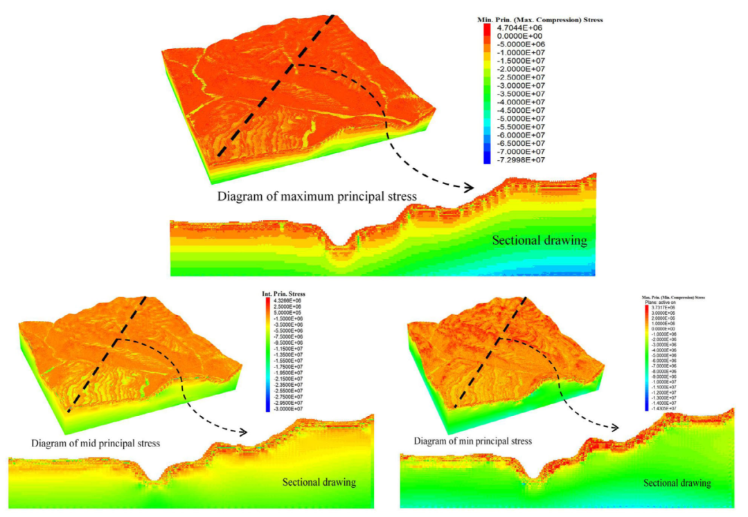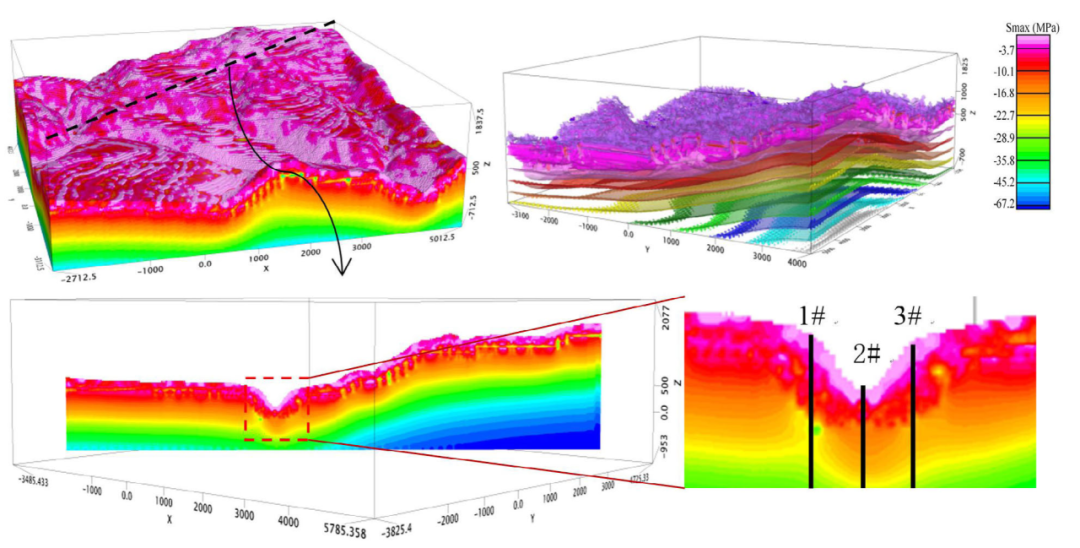 在中国西南的山区和峡谷地区,该地区已建有多座水电站。它是国家水电能源开发的主要基地,但受地质结构和地表侵蚀的影响,该地区的地应力环境更加复杂。本文的主要目的是利用神经网络建立实测地应力数据与数值计算之间的关系。因此,可用于分析溪洛渡地区大规模地应力的分布特征和区域地质体在地应力作用下的破坏。本文分析了溪洛渡地区的地质条件和地应力实测资料。结果表明,该区地表风化现象明显,应力环境复杂。深度对地应力水平有积极影响,但影响程度不同。利用实测地应力数据对遗传算法BP人工神经网络(G-P)方法进行训练。基于现场实测数据、神经网络算法和数值模拟技术,对工程区的三维地应力场分布特征进行了研究。研究表明,将实测、数值分析和神经网络反演相结合的方案是可靠的;深度是影响溪洛渡地区最大水平应力值的重要因素;在地应力作用下,地质体裂隙相对发育,蓄水期前形成三种类型的原始蓄水和流动空间;地下水的流动和储存空间包括石灰岩裂隙、玄武岩裂隙和斜坡裂隙含水层;库区蓄水后,库水通过垂直裂隙向下输送,最终库水与地下水形成水力联系。蓄水后,库区的水文地质条件将发生变化。