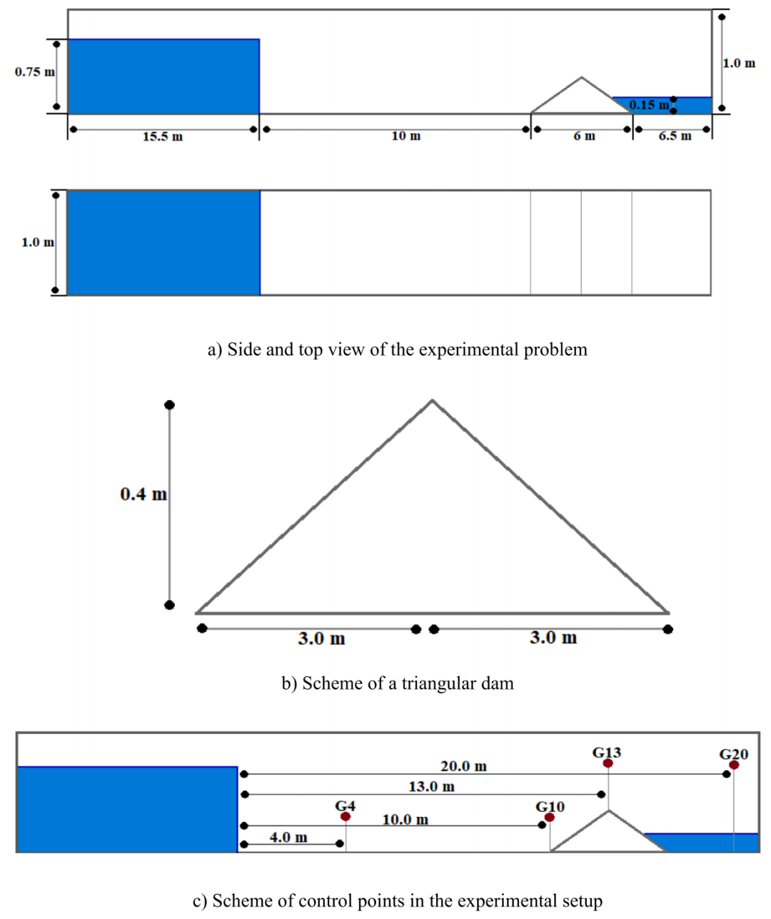 本文采用流体体积法对溃坝时水面的运动进行了数值模拟。该数学模型基于Navier-Stokes方程,并使用LES湍流模型,描述不可压缩粘性流体的流动和相的方程。这些方程是用有限体积法离散的。采用数值PISO算法对该方程组进行数值求解。通过使用VOF方法来捕捉水面的运动,这导致了严格的质量守恒定律。通过对溃坝问题的几个实验室实验,测试了三维模型和所选数值算法的准确性。在每一个问题中,都将获得的结果与实验数据和其他作者的几次计算进行了比较,在每个测试问题中,所开发的模型显示出与实验数据接近的结果。对不同湍流模型的模拟结果与实验数据进行了比较。并建立了非均匀地形下溃坝水流的三维模型。此外,还执行了两个更接近实际情况的组合问题,在这些问题的帮助下,确定了洪水区域和洪水时间,这将有助于从危险区域疏散人员。