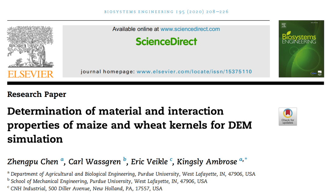 离散元法(DEM)已成为农业生产、加工和运输过程中谷物行为建模的流行方法。DEM模拟提供了颗粒流的定性和定量信息,有助于提高对谷物处理设备的理解、设计和优化。DEM模型的精度在很大程度上受到模型输入参数值的影响,如晶粒材料和相互作用特性。然而,由于核的不规则形状和这些生物材料的异质性,准确和适当地量化这些特性仍然是一项具有挑战性的任务。在本研究中,采用直接测量和校准试验相结合的方法确定了玉米和小麦籽粒的DEM模拟材料和相互作用特性,并通过散装材料试验进行了验证。表征测试包括用于获取核尺寸和形状信息的X射线显微CT扫描,使用往复式销摩擦计测量摩擦系数,以及用于校准恢复系数的斜面跌落测试。测量的模型参数值用于两种常见散装材料试验的DEM模拟:浇注体积密度试验和休止角试验。堆密度试验的百分比误差玉米为4.0%,小麦为8.4%,休止角试验的误差玉米为0.4%,小麦为1.3%。使用特征测试测量的参数对体积密度和休止角测试进行DEM模拟,能够准确预测实验测量结果。