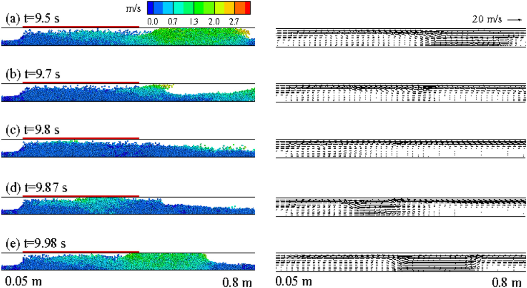 图:段塞流流型中的段塞配方: (左)颗粒流模式,(右)气体流场