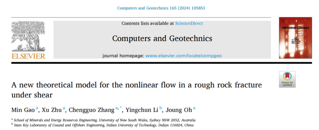 剪切变形显著影响岩石裂隙中流体流动的非线性。为了使用Izbash方程来估计这种非线性流动,有必要确定Izbassh系数。然而,它们的参数表达式很少被提及,尤其是当涉及剪切流过程时。本研究通过结合Darcy–Weis bach方程和摩擦因子,提出了一种改进的基于Izbash方程的模型。所提出的模型考虑了两种渐近情况。在低Re区域,流体流动区域由粘性效应主导,并且所提出的模型可以近似于三次定律。当Re达到某一阈值(Res)时,流体流动转变为完全湍流状态,其中惯性力主导流体行为。因此,所提出的模型等效于Forchheimer方程的二次项。在法向应力为0.5~3MPa的5个粗糙断裂面上进行的实验结果验证了该模型的正确性。实验曲线和分析曲线之间的良好相关性表明,所提出的具有强大理论基础的模型产生了良好的预测,归一化目标函数(NOF)和平均误差(σave)分别在0.18%和15%以内。