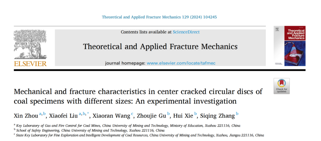 裂缝在小范围内的传播会导致动态灾害,如煤层中大规模裂缝引起的岩爆。为了深入了解深部煤层断裂灾害的机理,本研究以不同尺寸的中心裂纹圆盘(CCCD)为特征,研究了煤样裂纹扩展的微观过程和尺寸效应。我们对不同尺寸的煤样进行了巴西劈裂试验,并采用声发射(AE)和数字图像相关(DIC)技术定量描述了裂纹的扩展过程。此外,还比较了不同直径的煤试样在拉伸破坏过程中不同断裂参数的尺寸效应特征。结果表明,随着试件尺寸的增加,准脆性破坏特征变得明显,抗拉强度逐渐降低并趋于稳定,而断裂韧性和断裂过程区长度逐渐增加并趋于稳定。煤试样中的宏观裂纹通常从试样的中心沿着预裂纹延伸到两端。大的能量事件主要集中在预裂纹的下端。随着煤样尺寸的增加,AE事件的数量减少,而大能量事件的比例逐渐增加,临界裂纹张开量随着尺寸的增加呈线性增加。通过对煤样进行断裂尺寸效应实验,我们将相关的力学参数从实验室规模的试验扩展到现场工程规模。这为基于断裂力学的原位煤大规模断裂过程分析提供了基本参数。
