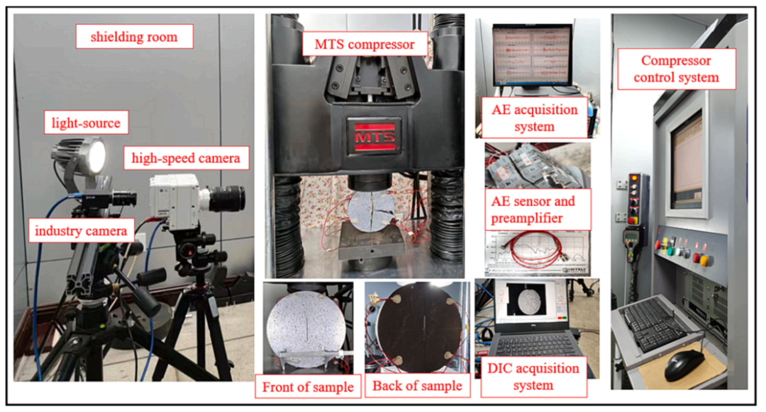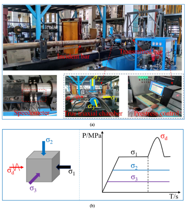 图:(a)实验设备的照片。(b)煤样装载路径