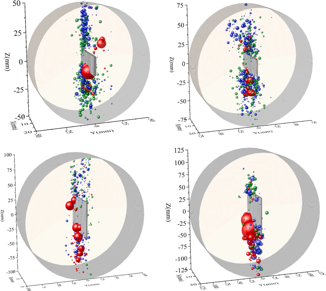 图:煤样峰值载荷时刻声发射事件的空间分布。
