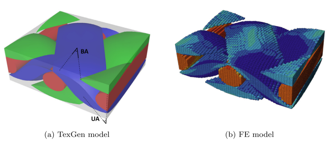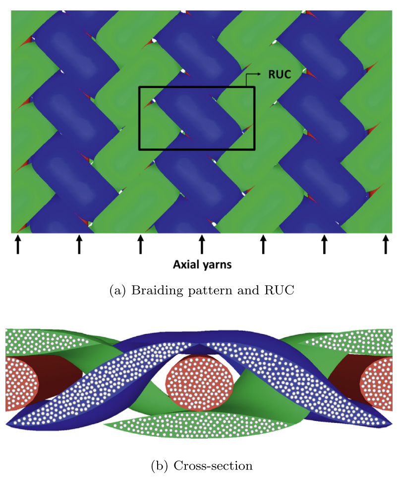 图:三轴编织图案:(a)俯视图,(b)侧视图(横截面)。