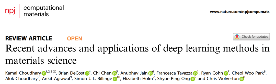深度学习(DL)是材料数据科学中增长最快的主题之一,其应用迅速出现,涵盖原子、基于图像、光谱和文本数据模式。DL允许分析非结构化数据和自动识别特征。最近大型材料数据库的发展推动了DL方法在原子预测中的应用。相比之下,图像和光谱数据的进步在很大程度上利用了高质量前向模型以及生成无监督DL方法所实现的合成数据。在这篇文章中,我们对深度学习方法进行了高级概述,然后详细讨论了深度学习在原子模拟、材料成像、光谱分析和自然语言处理方面的最新发展。对于每种模式,我们讨论了涉及理论和实验数据的应用,典型的建模方法及其优势和局限性,以及相关的公开可用软件和数据集。最后,我们讨论了该领域与不确定性量化相关的最新交叉工作,并简要展望了材料科学中DL方法的局限性、挑战和潜在增长领域。