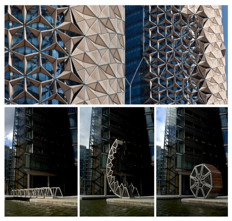 图:(a) Al Bahar塔的互动立面,以及(b)heatherwick工作室的滚桥。
