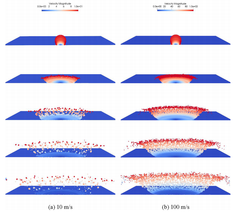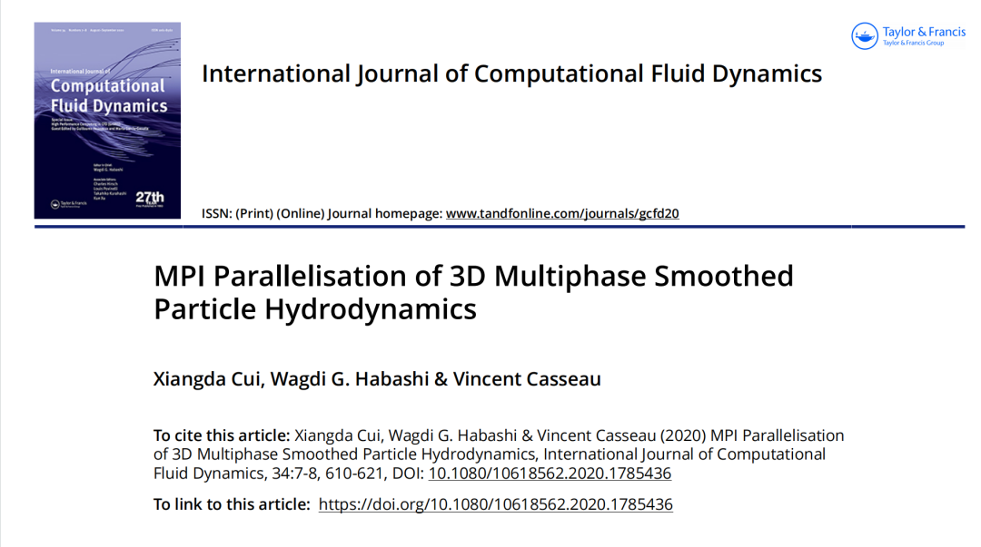 本文研究了三维多相平滑粒子流体力学(SPH)求解器的 MPI 平行化问题,重点研究了过冷大液滴(SLD)撞击问题。SPH 使用移动的粒子来表示流体流动,需要特殊的并行策略。细胞系统提供了一个空间参考,用于生成动态邻居列表,以及打包、发送和接收粒子。提出了一种适应粒子迁移的重新索引方法,并提出了一种序列粒子采集技术,降低了三维分区通信的复杂度。在1024个1.1亿粒子的处理器上进行了可扩展性测试,并研究了粒子负载对计算速度的影响。然后将求解器应用于不同冲击速度和直径下的液滴撞击,以研究由此产生的飞溅。这项工作为高度多线程的 SPH 解决方案提供了一种通用的方法,允许大量的计算来提高精度和/或参数研究的大量运行。