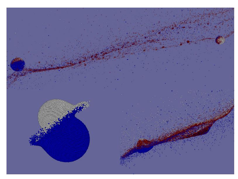 图:原行星大小的天体之间肇事逃逸碰撞的快照。
