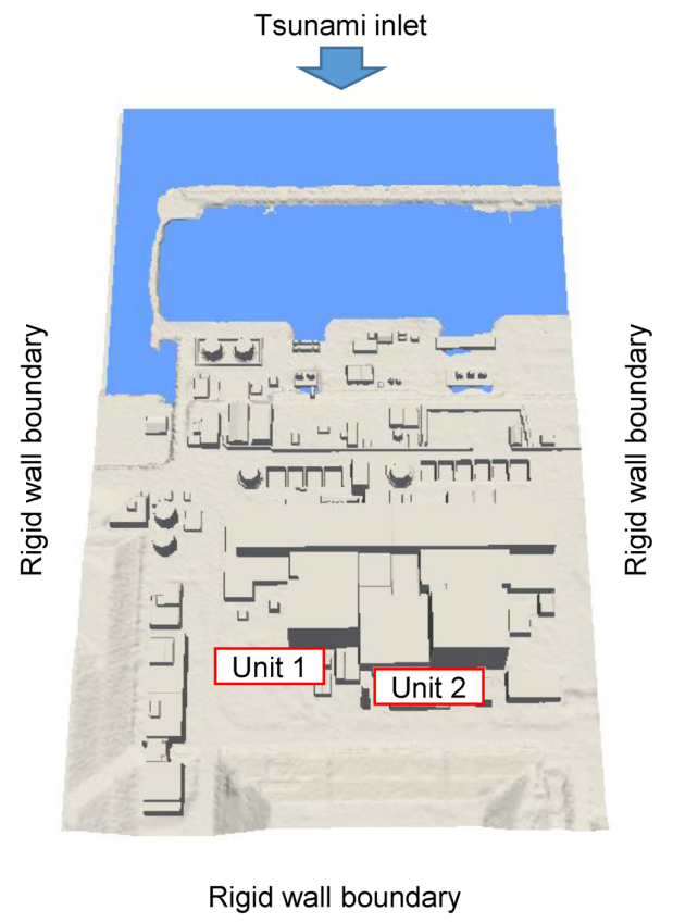 图:福岛第一核电站初始条件下的三维粒子模型。