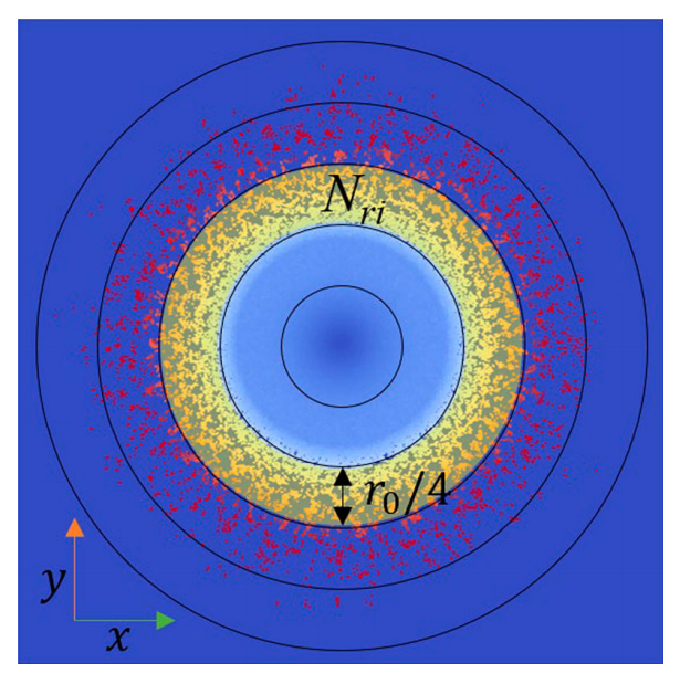 图:计算每个截面中粒子数量的径向装仓方法示意图。
