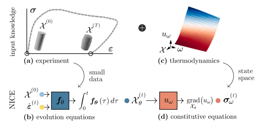 基于深度学习算法的数据驱动模型旨在通过直接从数据中学习来克服传统本构模型的局限性。然而,对整理材料完整状态的广泛数据的需求受到传统实验观测的阻碍,传统实验观测通常只提供少量数据——稀疏和部分材料状态观测。为了解决这个问题,我们开发了一种新的深度学习算法,称为本构方程的神经集成,以从稀少和不完整的观测中发现材料点水平的本构模型。它建立在描述材料状态时间演变的初值问题的解决方案的基础上,与大多数需要状态变量增量的大数据的数据驱动本构建模方法不同。数值基准测试表明,该方法可以从收集不完整、稀疏和噪声数据的简单传统实验协议中学习准确、一致和稳健的本构模型。