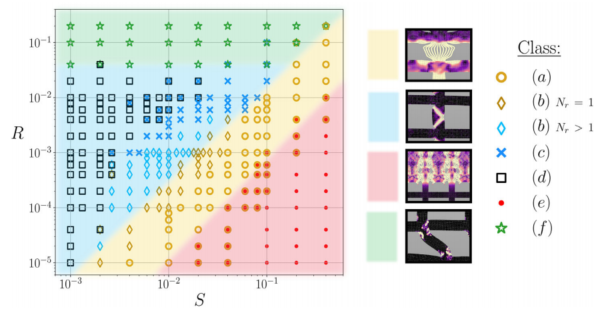 图:在S和R空间中分类的压实模式,适用于固体面积分数为0.40的结构