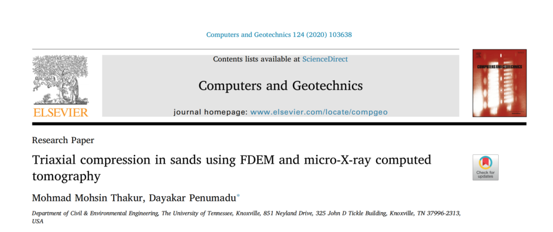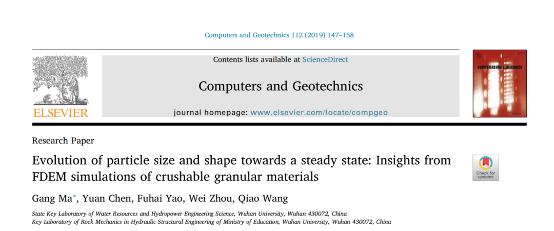 我们将颗粒形状表示、颗粒破碎建模以及碎片大小和形状获取方面的最新进展添加到有限元和离散元组合方法(FDEM)中。颗粒材料被建模为可压碎且形状不规则的多面体颗粒的集 合。在单个颗粒的有限元离散化中,通过嵌入在任意四面体对之间的可破裂内聚界面单元(CIE)来模拟颗粒破裂。在没有将模型参数校准为特定类型的颗粒材料的情况下,FDEM模拟结果在质量上与实验室测试和DEM模拟非常一致,这表明FDEM方法揭示了可压碎颗粒材料的主要机制。颗粒破碎主要通过拉伸裂纹扩展引起的主要分裂或剪切掉局部凹凸而发生。我们分析了颗粒破碎过程中颗粒尺寸分布和颗粒形状的演变。从FDEM模拟和其他实验结果来看,我们认为,当压缩到足够高的应力水平或剪切到非常大的应变时,颗粒土可能会达到稳定状态。当达到稳定状态时,颗粒破碎几乎停止,颗粒尺寸和形状分布几乎保持不变。