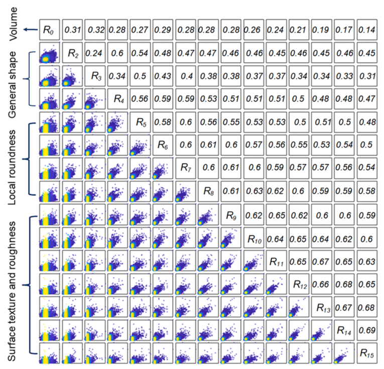 图:样本中所有粒子的SH旋转不变量的相关系数矩阵。颜色表示范围(0,1)中的数据点密度,黄色表示较高的密度。