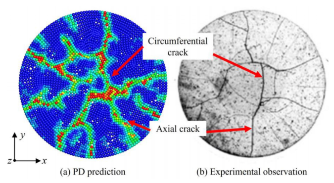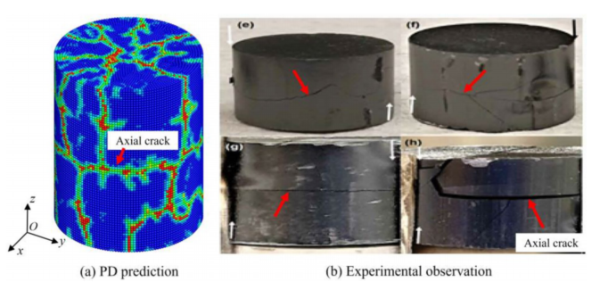 图:球团侧面轴向裂纹与实验观察的比较