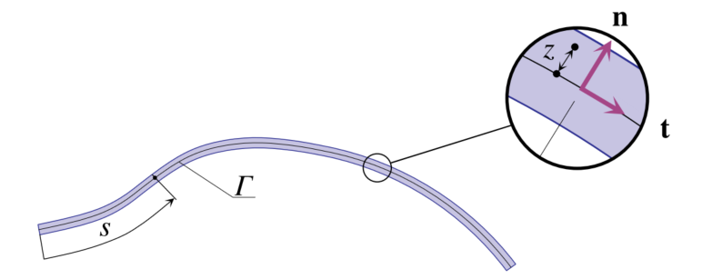 图:弯曲梁的几何图形和坐标。