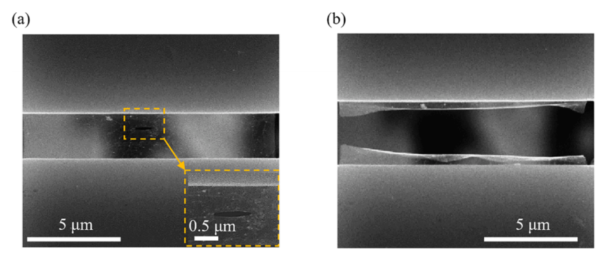 图:在实验中,(a)脆性断裂之前和(b)脆性断裂之后的预裂石墨烯样品的形式。