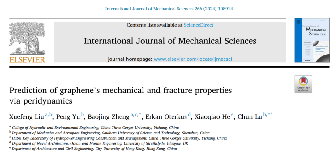 尽管石墨烯被认为是最强的材料,但这种材料的许多性能仍然值得探索和发现,特别是其制备过程中不可避免的缺陷对力学性能和断裂性能的影响,具有重要意义。这项工作为研究石墨烯的力学性能和断裂性能提供了一种新的可行方法。本研究的新颖性有三个方面:(1)提出了一种新的多晶石墨烯的近场动力学(PD)模型,其中存在大尺寸晶粒;(2) 揭示了裂纹前长度和晶粒尺寸对伪Hall-Petch反关系的耦合效应;(3) 结果证实了经典Griffith理论在石墨烯脆性断裂分析中的适用性。基于所提出的PD模型,本研究研究了力学性能和断裂性能对从几纳米到几百纳米的晶粒尺寸的依赖性。石墨烯的断裂形式与实验观察结果一致。基于Griffith理论,获得的断裂韧性如Kc或Gc与先前报道的理论和实验值相当,这证明了所提出的PD模型的有效性。此外,钝的裂纹前尖端可以大大提高断裂韧性。这项工作为石墨烯的机械失效提供了见解,并为其实际应用提供了石墨烯碎片化的指导。