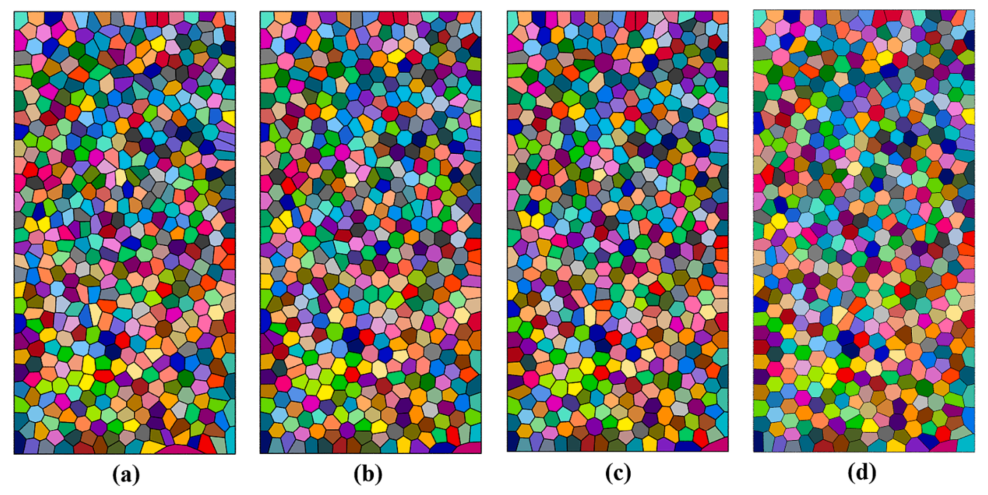 图:不同均匀性指数 Voronoi 网格的晶粒形状。