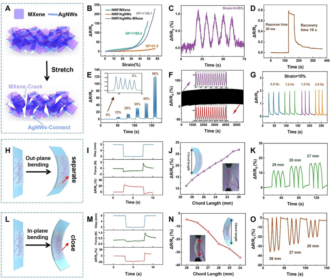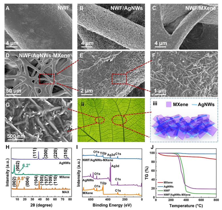 图:仿生叶脉MXene/AgNWs交替组装导电路径改性非织造布。