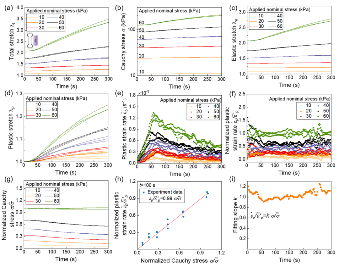 图:在紫外线照射下进行的各种施加标称应力值的单轴蠕变实验。