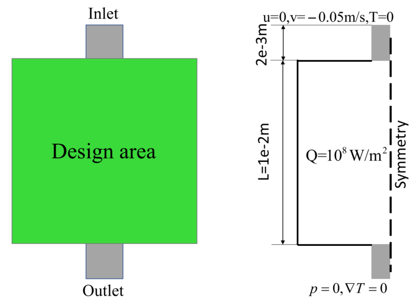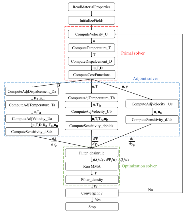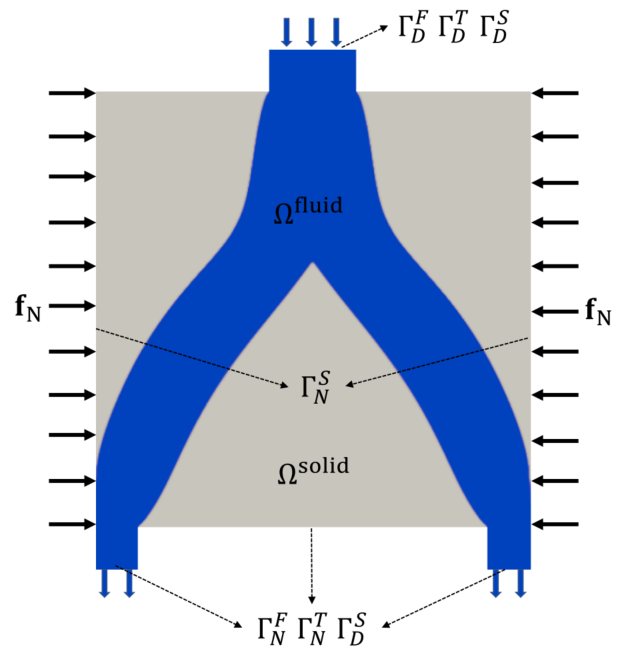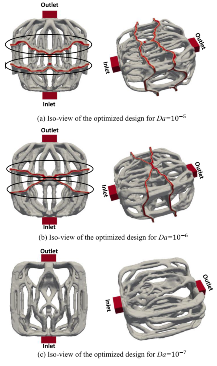 本文研究了热流体结构问题的拓扑优化方法,以设计具有承载能力的三维散热器。优化公式化为由Navier-Stokes(N-S)方程以及能量平衡和线性弹性方程控制的平均温度最小化问题。为了防止不切实际的低承载设计,流体装置的功率耗散和承载表面上的法向位移被视为约束。多物理拓扑优化问题的并行求解器是内置的开放域操作和操纵(OpenFOAM)软件。灵敏度分析采用连续伴随法,最大限度地利用内置求解器。利用所开发的工具,对三维热流体拓扑优化进行了研究。研究发现,适用于流体设计的达西数可能会给热流体优化带来严重问题。还研究了三维热流体结构问题的结构特征。“2D挤压设计”有助于提高结构刚度,在高温区域具有较大纵横比的通道可以提高冷却性能。