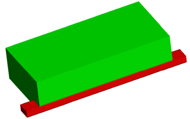 图:三维直线冷却通道示意图(红色和绿色 区域分别表示流体和固体)。