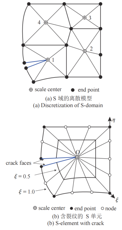 图:单缺陷板几何尺寸及SBFEM边界离散