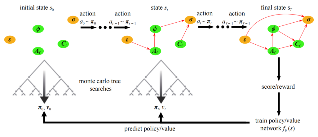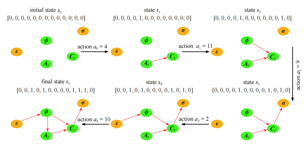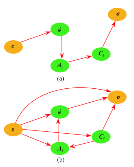 颗粒材料的宏观力学行为受颗粒组分等材料参数,孔隙率、配位数等状态参数的影响,同时又具备复杂的加载路径和加载历史相关性,建立包含多个内变量以及各变量间相互关联的颗粒材料本构模型是一个重要的科学难题。不同于传统的基于屈服面、流动法则和硬化函数框架下的唯象本构模型,本文基于颗粒物质力学的研究基础,以颗粒材料平均孔隙率、细观组构参数和弹性刚度参数作为内变量,结合深度学习方法建立以有向图表征的数据本构模型。有向图中以不同的链接网络表示不同的内变量信息流动方向,各个内变量间的映射关系采用循环神经网络来建立,将各个神经网络相互组合,形成包含不同内变量且具有不同预测能力的本构模型。该本构模型的建立过程等价于在众多可能的内变量链接关系空间中寻找最能描述实际材料宏观应力应变行为的优化问题。因此,可将有向图本构模型的建立过程看作“马尔可夫决策过程,采用深度强化学习算法构建有向图的内变量链接组合优化过程,具体采用AlphaGo Zero算法自动寻找最优的颗粒材料数据驱动本构模型建模路径。研究结果表明,采用有向图和深度强化学习算法可建立起完全依靠“数据驱动”的颗粒材料应力一应变关系。此外,本方法提供了一种将不同理论模型从数据角度统一起来,且基于人工智能算法发展更优模型的研究思路,可为相似问题的研究提供借鉴。
