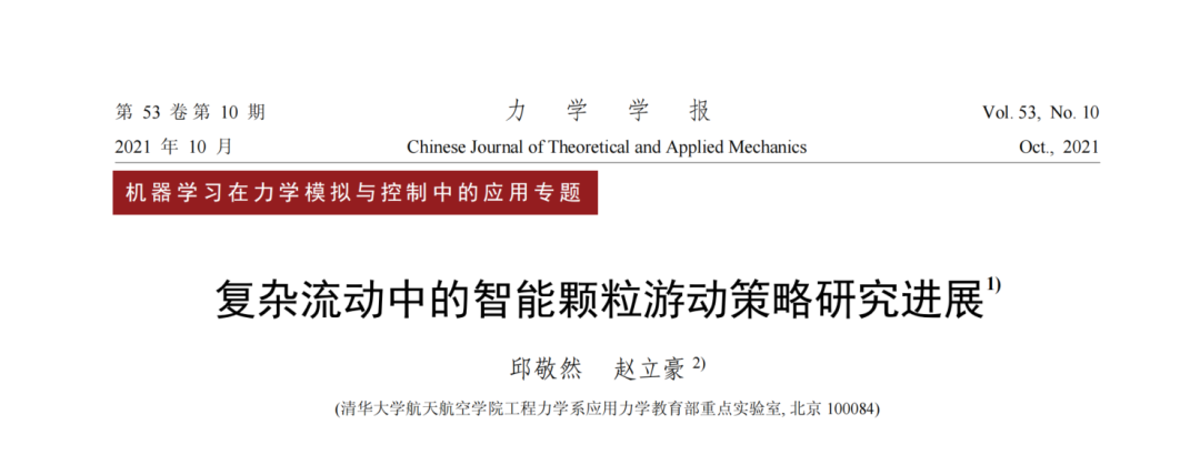 智能颗粒定义为可以根据环境的变化而主动调整自身在流场中运动的颗粒,一般用于描述微小的游动物体,如微生物、浮游生物和微纳机器人。由于颗粒运动学特性和流场环境的复杂性,探索智能颗粒的运动策略是一项具有现实意义与挑战性的研究。近期强化学习算法被应用于智能颗粒的运动策略研究,并取得一定进展。本文将讨论强化学习在智能颗粒研究中的应用,并介绍浮游生物运动策略的相关研究进展,包括适用于海洋浮游生物的游动颗粒模型,以及强化学习的基本原理和此类问题的研究框架。海洋浮游生物的昼夜垂直迁移对其生存和繁衍至关重要,生物学研究表明某些浮游生物可感知周围的流场信息,但能否利用这些信息提高垂直方向游动效率仍是一个未知的问题。基于这一背景,相关研究考虑了重力沉降和颗粒形状对浮游生物垂直游动策略的影响。研究发现细长的颗粒能够更加高效地垂直向上运动,而重力沉降则导致智能游动策略发生较大变化。在此基础上,后续研究进一步考虑了局部流体信号的作用,并讨论了基于局部信息在全局坐标系中定向运动的可能性。当颗粒只能感受到局部流体信号时,必须破坏动力学系统的对称性,否则颗粒无法学到有效的垂向游动策略。此外,研究还发现强化学习能够利用流体信号背后的机制,得到颗粒在二维定常流动和三维非定常湍流中高效垂直运动的策略。这些智能游动策略依赖于本质的物理规律,因此这些策略在更加复杂或真实的流动中也可能有优秀的表现。