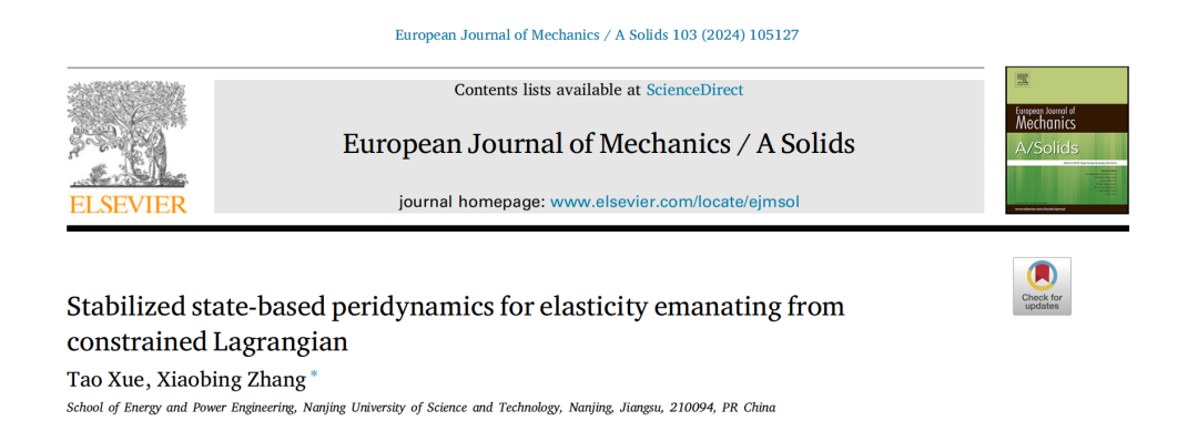 近几十年来,近场动力学在连续介质力学中得到了广泛的应用,特别是那些涉及尺寸效应、裂纹和不连续性的特殊问题。它是经典固体力学的非局部扩展,其中连续体或一组离散粒子中的材料点通过力相互作用。近场动力学的基本方程用积分方程而不是微分方程重新表述,使其非常适合不连续性。
