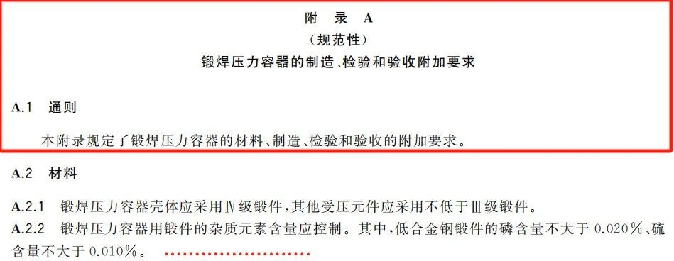 m) 增加了对锻焊压力容器的制造、检验和验收附加要求(见附录A)。n) 增加了对套合压力容器的制造、检验和验收附加要求(见附录B)。 o) 增加了对多层包扎压力容器的制造、检验和验收附加要求(见附录C)。p) 增加了对钢带错绕压力容器的制造、检验和验收附加要求(见附录D)。q) 增加了对基于防止低温脆断校核设计的压力容器的制造、检验和验收附加要求(见附录E)。