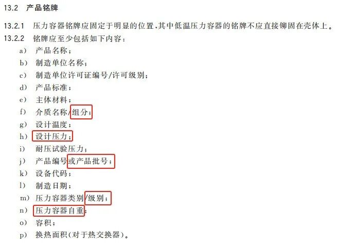 增加了热气循环试验的规定,内容包括:试验对象、试验时机、试验操作要求、试验后的检验要)求及合格判定(见第 12章)。1)更改了产品质量证明书提供方式及所包含的内容的规定(见13.1.2,2011年版的13.1.2);2)更改了产品铭牌内容(见13.2,2011年版的13.2);3)增加了对出厂压力容器表面除锈的要求(见13.3.1);4)增加了对出厂压力容器酸洗钝化处理的要求(见13.3.2);