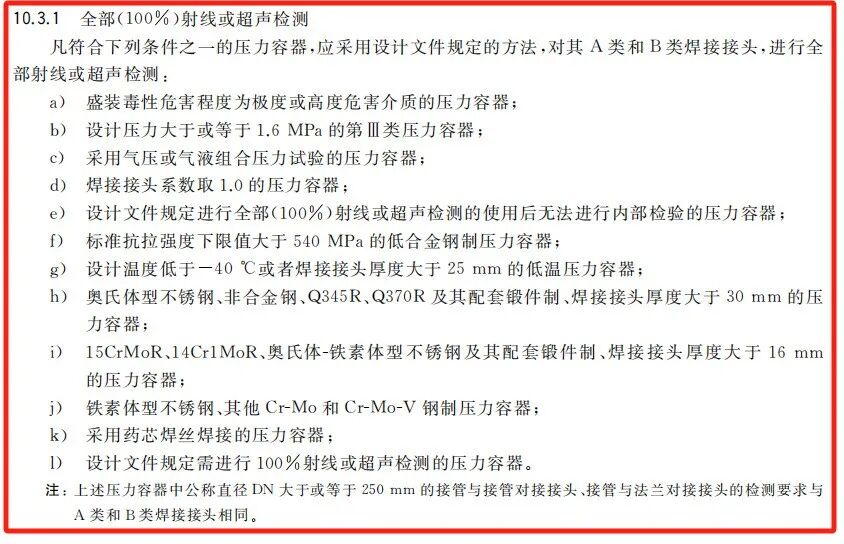 文件适用于钢制压力容器以及复合板压力容器,衬里压力容器,带堆焊层压力容器中非合金钢低合金钢或高合金钢制基层的制造、检验和验收。