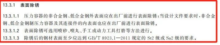 5)增加了对出厂压力容器喷丸处理的要求(见13.3.3);
